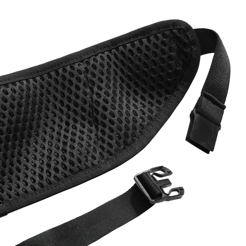 ウェビングを使用せず摩擦を軽減し、通気性に優れたバックパネルを採用。調節可能なバックルがぴったりとしたフィット感をもたらします。