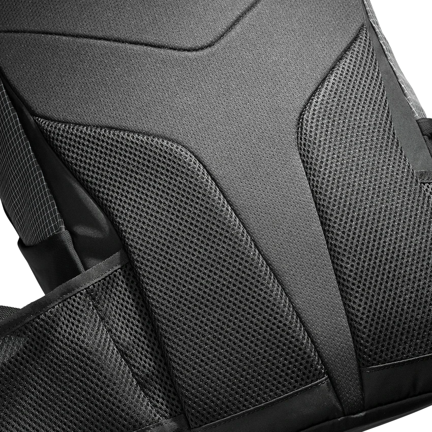 20 リットルの容量に加え、パソコン吊り下げ用スリーブやサイドジップポケットなど、必需品を整理・出し入れしやすい構造が整っています。