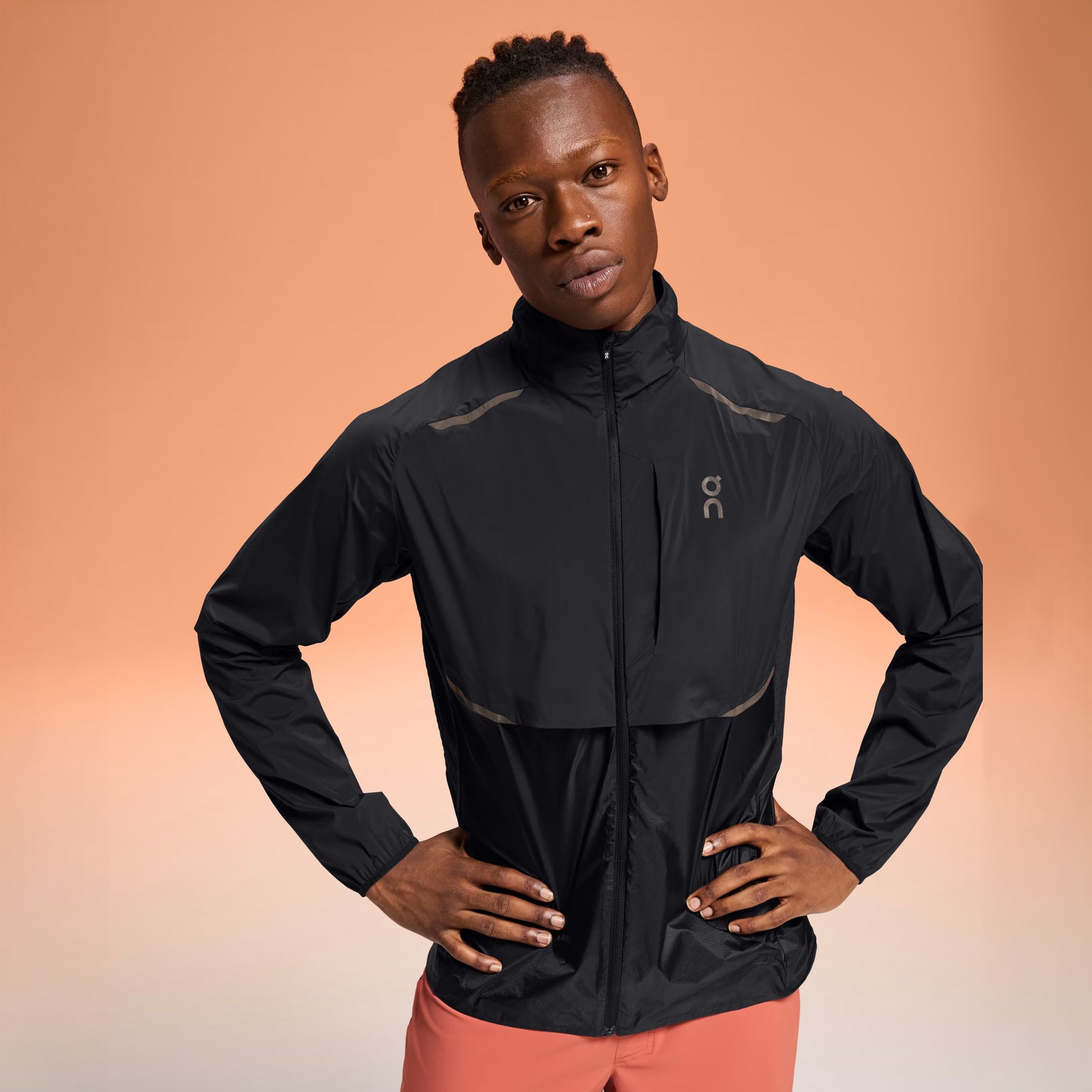 ウェザージャケット:悪天候から​​​体を​​​守る​​​超軽量ランニングジャケット。​​​通気性の​​​高い​​​防風素材を​​​使用。​​​天気が​​​変わりやすい​​​日に​​​最適です。
